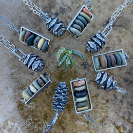 There is something for everyone in this release. Lots of rings, new beach stone pieces, some botanicals, some sea urchin, some brand new cast melaleuca necklaces and more. You could probably guess that I would rather be making in the studio, hiking, running, playing pickleball (yes, I am loving playing pickleball) or gardening than doing the computer work but I finally got in gear and am getting it done.
