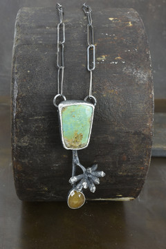 The Fall Collection is driven by the muted warm colors of autumn in the Northwest. As the plants and trees in the garden and nearby woods ease into the colder months, hues change and productivity rains from the sky on cold windy days in an alder grove. The stones I chose for this collection tended to follow this seasonal theme - but there were a few exceptions in which I was so taken with a particular stone (like that blue topaz and turquoise), that I just couldn't wait...