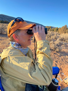Our exodus from the border desert had us migrating north toward home – with passage through a bunch of AZ – including a night at a BLM campground called Burro Creek near Wikieup, AZ – then a nice stop in Flagstaff for some coffee and pastries – then toward the Vermillion Cliffs and the upper end of the Grand Canyon. We saw a couple pairs of California Condors soaring and on nests near the Navajo Bridge at Marble Canyon on the Colorado River and then moved on to find a place to camp along a (long!) dirt road in the Vermillion Cliffs National Monument. Condors have been released in this area to aid in their recovery. From our camp spot we had a great wander in this amazing landscape. We tried to get up one set of cliff bands and chickened out – and then went up through a different set for some amazing views. Evening happy hour at the camper with beers and chips/salsa included an appearance by a condor that cruised along the cliffs and circled and circled in the evening light – much to Geoff’s (and my) delight. Many ‘WOW’s’ were exclaimed by Geoff as he took in the display through his binoculars. This area was a definite favorite for both of us.